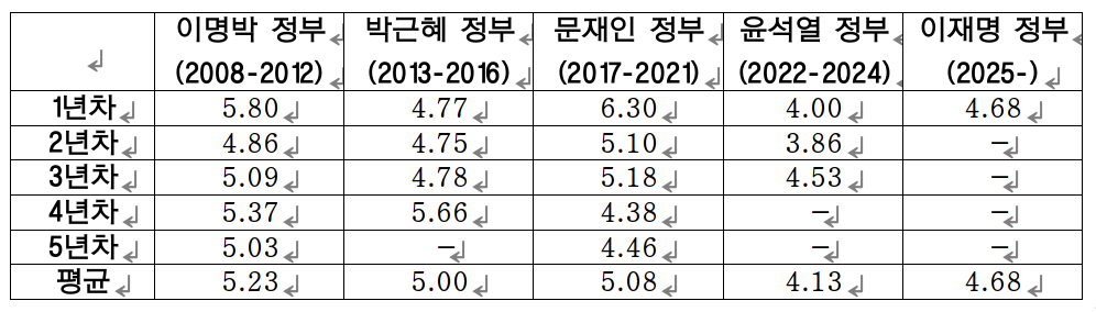 <표 1> 역대 정부별 갈등의 민주주의 발전의 기여도(갈등의 순기능)에 대한 시민 인식의 변화