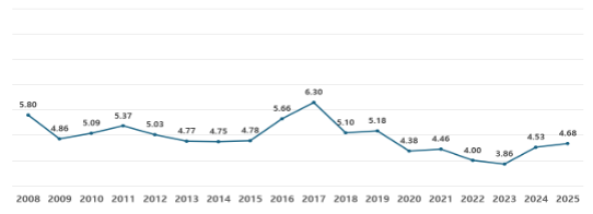단국대학교 분쟁해결연구센터는 2008년부터 매년 ‘갈등 및 분쟁에 관한 시민인식조사’를 여론조사 전문기관을 통해 실시하고 있다. 본 인식조사는 당해 연도에 발생한 공공갈등에 대한 시민들의 인식뿐만 아니라 갈등과 신뢰와의 관련성, 갈등이 민주주의 발전에 기여하고 있는가 등 다양한 항목으로 구성되어 있다. 이를 통해 공공갈등에 대한 과거의 연구들이 보여주지 못한 한국인들의 다양한 시각과 인식을 분석하고 있으며, 통시적으로 연속성을 가지면서도 시기별 특징을 선별적으로 파악하고 있다. 본 뉴스레터는 2008년부터 2025년까지 18년간 진행된 시민인식조사 결과를 항목별로 통합하여 시민들의 인식이 어떻게 변화해 왔는가를 시리즈로 소개하고자 한다. 이번 2월호에서는 2008년부터 2025년까지 18년간 진행된 조사에서 나타난 ‘갈등의 민주주의 발전에의 기여도에 대한 시민 인식 정도’, 즉 ‘갈등의 순기능에 대한 시민 인식 정도’의 변화 추이 내용을 소개하고자 한다. 이러한 질문 항목은 사회갈등으로 인하여 시민들이 부정적으로 생각하는 정부정책이 철회 또는 수정되거나 사회적인 문제가 긍정적으로 해결되는 양상을 보면서 시민들이 사회갈등의 역할에 대해 긍정적으로 인식하거나, 반대로 사회갈등이 국론 분열을 조장함으로써 국가발전과 사회통합을 저해하는 등 사회갈등의 역할에 대해 부정적으로 인식하는 정도를 반영하는 조사내용이라고 할 수 있다. 이에 대한 질문은 “올해 우리 사회가 경험한 갈등이 민주주의 발전에 긍정적이라고 보십니까? 부정적이라고 보십니까?”로서, 이에 대한 응답은 ① 매우 긍정적이다, ② 긍정적인 편이다, ③ 부정적인 편이다, ④ 매우 부정적이다, ⑤ 보통/모름/무응답으로 구성되었다. 해당 그래프는 2008년부터 2025년까지의 응답을 10점 척도로 환산하여 시민들의 인식이 어떻게 변화되었는지를 정부 시기별로 나타낸 내용이며, 이를 시계열로 나타낸 그래프로서 점수가 높을수록 긍정적으로 인식하고 있다는 것을 표시하고 있다. 이 두 가지 내용에서 나타난 매우 흥미로운 특징을 살펴보면, 일반적인 생각과는 다르게 정치적으로 격변기에 있었던 연도는 우리 사회가 경험한 갈등이 민주주의 발전에 긍정적이라고 응답한 비율이 높다는 것이다. 이를 구체적으로 살펴보면 첫 번째로 이명박 정부 출범 첫해이면서 광우병과 관련하여 미국산 쇠고기 수입 반대 촛불집회가 전국적으로 확산되었던 2008년은 5.80으로서 갈등의 순기능에 대한 인식이 비교적 높았음을 알 수 있다. 이는 이명박 정부 출범 직후인 2008년 4월부터 광우병 논란과 함께 불거진 『』미국산 쇠고기 수입’ 갈등이 전국적으로 확산되면서 정권을 위협하자 이명박 대통령이 특별기자회견을 통해 대국민 사과를 하고 미국산 쇠고기 수입 정책을 변화시키는 등의 모습을 보면서 시민들이 사회적 갈등에 대해 긍정적으로 인식한 결과라고 할 수 있다. 두 번째로 박근혜 대통령 탄핵 촉구집회와 국회 탄핵결정 및 헌법재판소 탄핵 인용으로 박근혜 대통령이 파면되고 문재인 정부가 출범한 2016년과 2017년은 각각 5.66과 6.30으로 매우 높은 편이었는데, 이는 『』촛불 혁명’이라고도 이야기될 정도로 탄핵이라는 전국적 차원의 갈등을 통해 대통령도 헌법 또는 법률을 위반하면 탄핵될 수 있다는 것을 목격하면서 시민들이 『』갈등이 민주주의 발전에 기여하고 있다’라고 긍정적으로 바라보았다는 것을 보여주는 결과라고 할 수 있다. 세 번째로 문재인 정부 시기와 윤석열 정부 초기 전반적으로 하락했던 지표가 윤석열 대통령의 비상계엄 선포와 국회의 탄핵결정이 이루어진 2024년도에 다시 4.53으로 높아졌으며, 2025년도에도 윤석열 대통령 파면과 이재명 정부가 출범하면서 4.68로 높아졌는데, 이는 박근혜 대통령 탄핵 시기와 동일한 현상이라고 할 수 있다. 네 번째는 위와는 반대의 현상으로서 윤석열 정부 1년 차에서는 4.00으로 지표가 가장 낮았는데, 이는 비록 여소야대 국면이기는 하지만, 대통령 취임 이후 사회갈등으로 인하여 윤석열 정부의 정책이 철회 또는 변화하는 모습이 나타나지 않고, 오히려 보수진영과 진보진영의 극단적 대립과 갈등이 진행되는 모습을 바라보면서 시민들은 갈등이 사회발전에 긍정적으로 기여한다기 보다는 사회발전을 가로막는 부정적 요인’이라고 인식하고 있는 조사결과라고 할 수 있을 것이다. 특히 중요한 것은 지난 18년간의 조사에서 사회갈등이 민주주의 발전에 기여하는가에 대한 질문에서 비율적으로 부정적인 인식이 높다는 것은 매우 주목할 만한 현상이라고 할 수 있다. 다원주의적 민주주의 사회에서 갈등은 필연적이다. 그럼에도 불구하고 현재 한국사회는 이념갈등은 물론 일반적인 사회갈등이 보수진영과 진보진영 간의 이념갈등으로 비화되는 갈등의 이념화 현상’으로 인하여 심각한 분열현상이 나타내고 있다. 따라서 갈등이 사회발전에 긍정적인 역할을 할 수 있도록 나와 다름을 인정하는 관용’의 정신을 배양할 수 있는 사회적 노력이 진행되어야 할 것이다. <분쟁해결연구센터, dcdr@dankook.ac.kr>